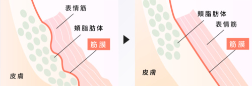筋膜は、筋肉や内臓など身体のあらゆる組織を包み込む膜状の組織。顔も例外ではなく、筋膜が硬くなったり、よれたりすることで、表情筋が本来の動きをしにくくなるとされています。